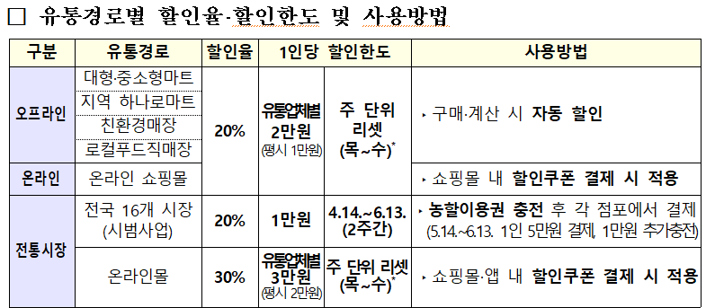 - 할인 한도: 1인당 1주일에 최대 2만 원까지 (2주간 최대 4만 원 절약 가능)